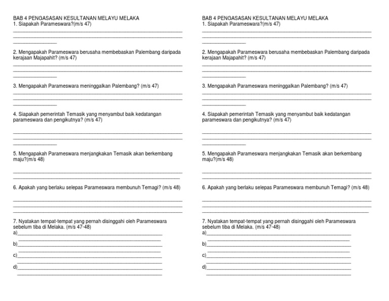 Bab 4 Pengasasan Kesultanan Melayu Melaka Soalan 1 7 Pdf